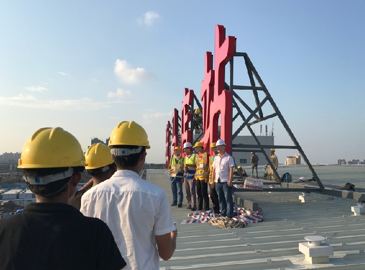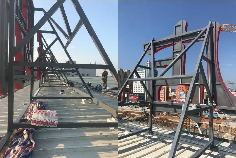 发光字站标采用1.5mm304不锈钢制作箱体,5mm台湾瑞昌亚克力面板,深圳日上LED模组,钢结构部分为80*80*5mm方管与200*200*8mm方管制作而成。