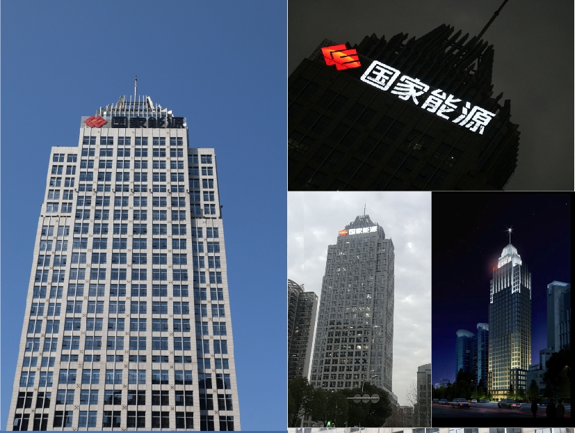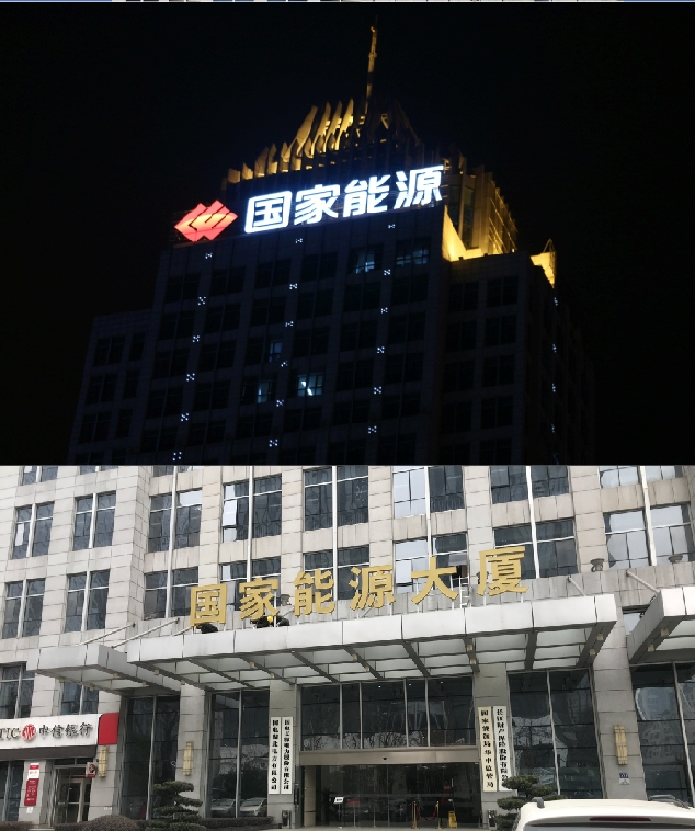 国家能源大厦项目地址位于武汉市武昌徐东大街113号,原名为国电大厦,是国家能源集团华中总部所在地,原楼顶LOGO发光字也为我司项目,本次为大厦更名项目。该发光字LOGO采用全彩渐变色发光工艺,制作复杂,“国家能源”四个发光字采用台湾瑞昌黑白板亚克力,不锈钢壳体,内置LED蓝景模组。