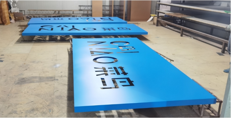 5、带背景板的户外招牌工艺:大面积的背景板一般采用1.5mm不锈钢或2毫米以上的铝板做无缝拼接,内部先用50*50镀锌方管龙骨结构焊接造型,承托面板,以防塌陷。每块背景板由于板材宽度限制,****宽度只能做到1.5米,而我司采用拼接填缝焊接打磨平整的工艺,可以****限度的减少拼接痕迹,又考虑到运输和安装的便利性,我司可****制作整板12米长宽度2.4米无拼接缝,美观高档,但对焊接工艺、细节处理要求较高;